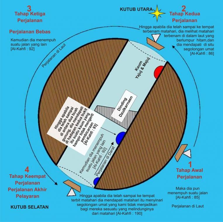 Jadi mereka memulai kapal untuk berlayar untuk melakukan perjalanan melalui laut, mulaiperjalanannya menuju Kutub Utara bergantung pada posisi bintang kutub, danperjalanannya itu setelah pada saat planet Nibiru meninggalkan jauh dari bumi, danmengarah pada laut Arktik utara yang melebur, sampai ia mencapai di perjalanannyamelalui laut Titik terjauh dari matahari terbenam di Kutub Selatan, Hal ini karena ketikamatahari terbenam di Kutub Selatan, Ini tenggelam di Kutub Utara di ayen hame'a "عَيْنٍ حَمِئَةٍ"(laut yang berlumpur hitam) di kutub utara, terakhir matahari terbenam terbagi pada bumi dari utara, “Zurlkarnain” menemuinya tenggelam di ayen hame'a"عَيْنٍ حَمِئَةٍ" (laut yang berlumpur hitam) di kutub utara, dan menemukan adanya kejahatan di bumi yaitu Yajuj & Majuj, maka Allah SWT berfirman tentang mereka: